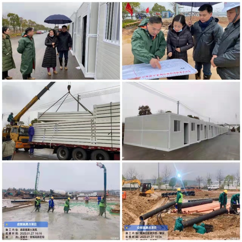 1月27日下午,宣州區(qū)政府副區(qū)長(zhǎng)范瀟瀟到疫情防控臨時(shí)隔離點(diǎn)施工現(xiàn)場(chǎng),查看工程施工進(jìn)展情況,并充分肯定了項(xiàng)目施工進(jìn)展速度。截止晚上18:00,疫情防控臨時(shí)隔離點(diǎn)項(xiàng)目集裝箱板房材料到場(chǎng)180多套,完成160套集裝箱板房拼裝;炷恋缆、雨污水管道和污水處理設(shè)施同步進(jìn)行。面對(duì)即將到來(lái)的低溫雨雪冰凍天氣,區(qū)國(guó)資集團(tuán)積極組織協(xié)調(diào)各項(xiàng)施工安排,施工人員全體上下團(tuán)結(jié)一心,以堅(jiān)決態(tài)度克服難關(guān),全力推進(jìn),高質(zhì)量完成項(xiàng)目建設(shè)。