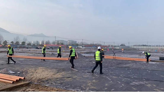年三十前,經(jīng)過各參建單位堅(jiān)持不懈的努力,準(zhǔn)備區(qū)、緩沖區(qū)、隔離區(qū)混凝土地坪及道路搶澆筑完成,污水處理設(shè)備基礎(chǔ)混凝土澆筑完成,30余臺機(jī)械設(shè)備順利撤場。