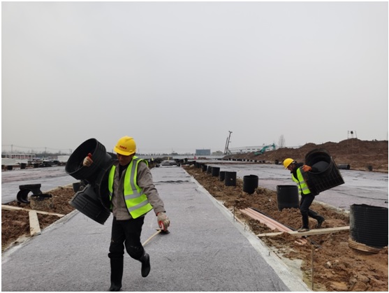 2月1日,農(nóng)歷大年初一,隔離點項目室外附屬班組施工人員正在進行雨污水管道施工作業(yè),雖然經(jīng)過節(jié)前加班加點的搶建工作,隔離點項目房屋基礎(chǔ)工程和道路工程已全部完工,但為了保證春節(jié)期間項目現(xiàn)場安全及已完工程的成品保護,項目部安排了春節(jié)期間值班值守及工作部署,全力搶工期、抓進度,確保節(jié)后順利復工和項目早日交付。