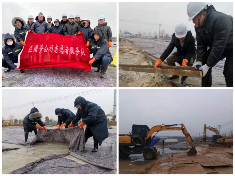2月2日,農(nóng)歷大年初二,雨雪交加。區(qū)國(guó)資集團(tuán)黨員突擊隊(duì)、志愿者服務(wù)隊(duì)前往疫情防控隔離點(diǎn)協(xié)助搬運(yùn)材料、清理廢渣、鋪設(shè)防凍布等,項(xiàng)目現(xiàn)場(chǎng)一派繁忙景象。下午項(xiàng)目建設(shè)組開始布置班組,明日正式開始準(zhǔn)備區(qū)折疊房吊裝施工,確保春節(jié)期間施工組織有條不紊,有序推進(jìn)。