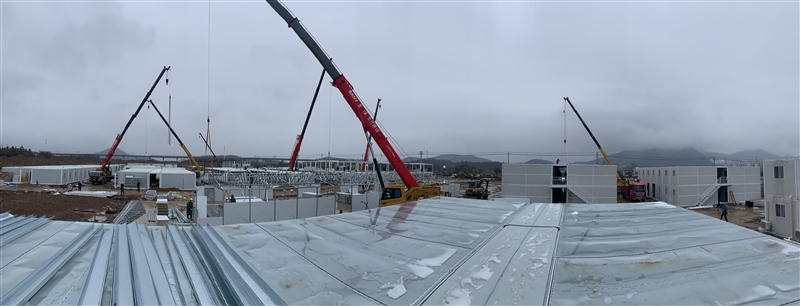 隔離點(diǎn)項目建設(shè)離完工僅剩十余天,自1月21日開工以來,各參建方努力調(diào)配一切可用的人力、物資,在全力保障項目建設(shè)的同時,努力節(jié)約采購成本。今日,施工現(xiàn)場近300人作業(yè),變壓器已安裝完成,打包房、板房、折疊房及水電設(shè)備等安裝進(jìn)展迅速。