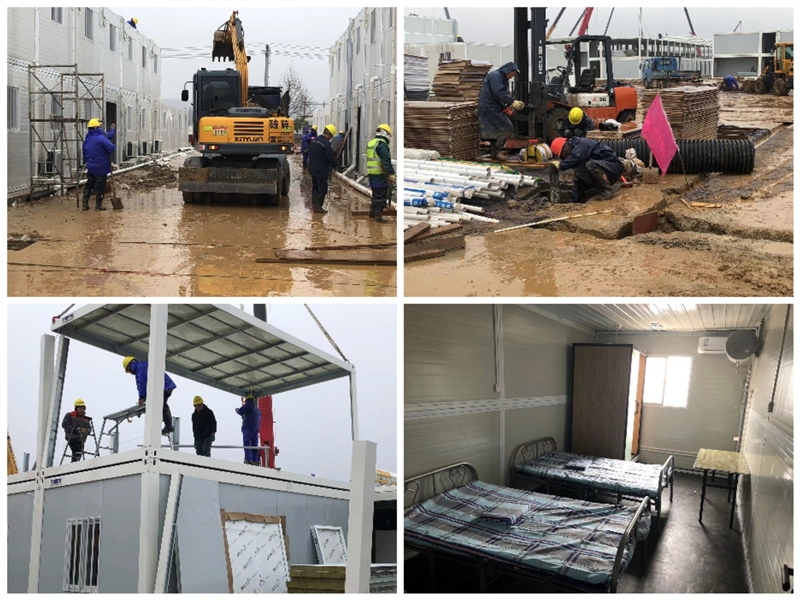 截至2月11日,隔離點項目準備區(qū)折疊房安裝完成,折疊房室內家具、空調、熱水器、淋浴房、水電正在有序安裝中;隔離區(qū)板房室外電力電纜井砌筑、緩沖區(qū)板房已安裝完成;污水處理設備正在安裝中,室外走道支模和路燈線路在準備中。