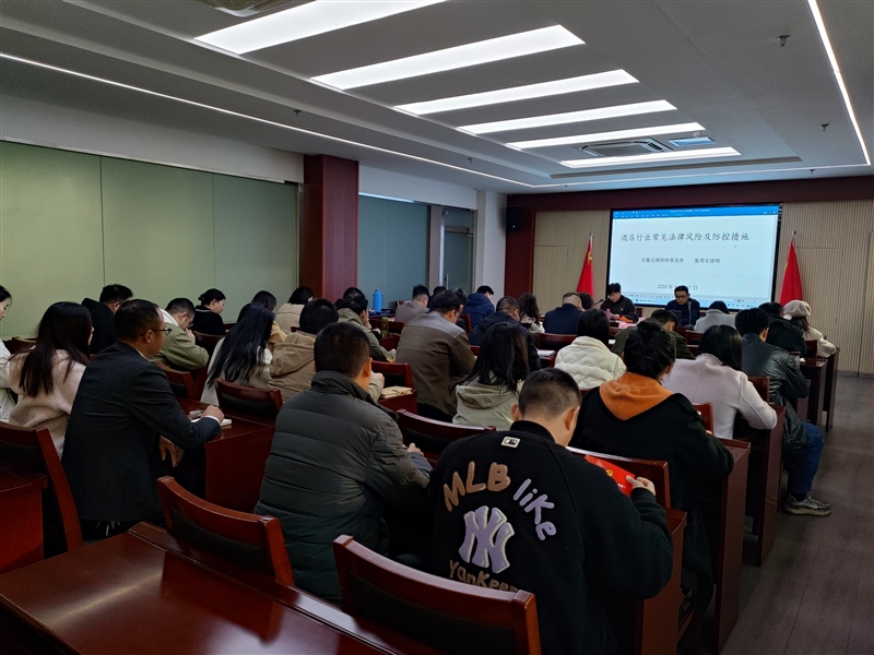 活動(dòng)中,眾博律師事務(wù)所黨支部書(shū)記張明軍以“酒店行業(yè)法律風(fēng)險(xiǎn)及防控措施”為主題,從人身安全、財(cái)務(wù)保管、客戶(hù)隱私、食品安全、品牌宣傳等七個(gè)方面,結(jié)合實(shí)際案例,對(duì)與會(huì)人員進(jìn)行了法治專(zhuān)題培訓(xùn),為集團(tuán)旗下酒店經(jīng)營(yíng)管理風(fēng)險(xiǎn)防范提供了有效的法律指引。